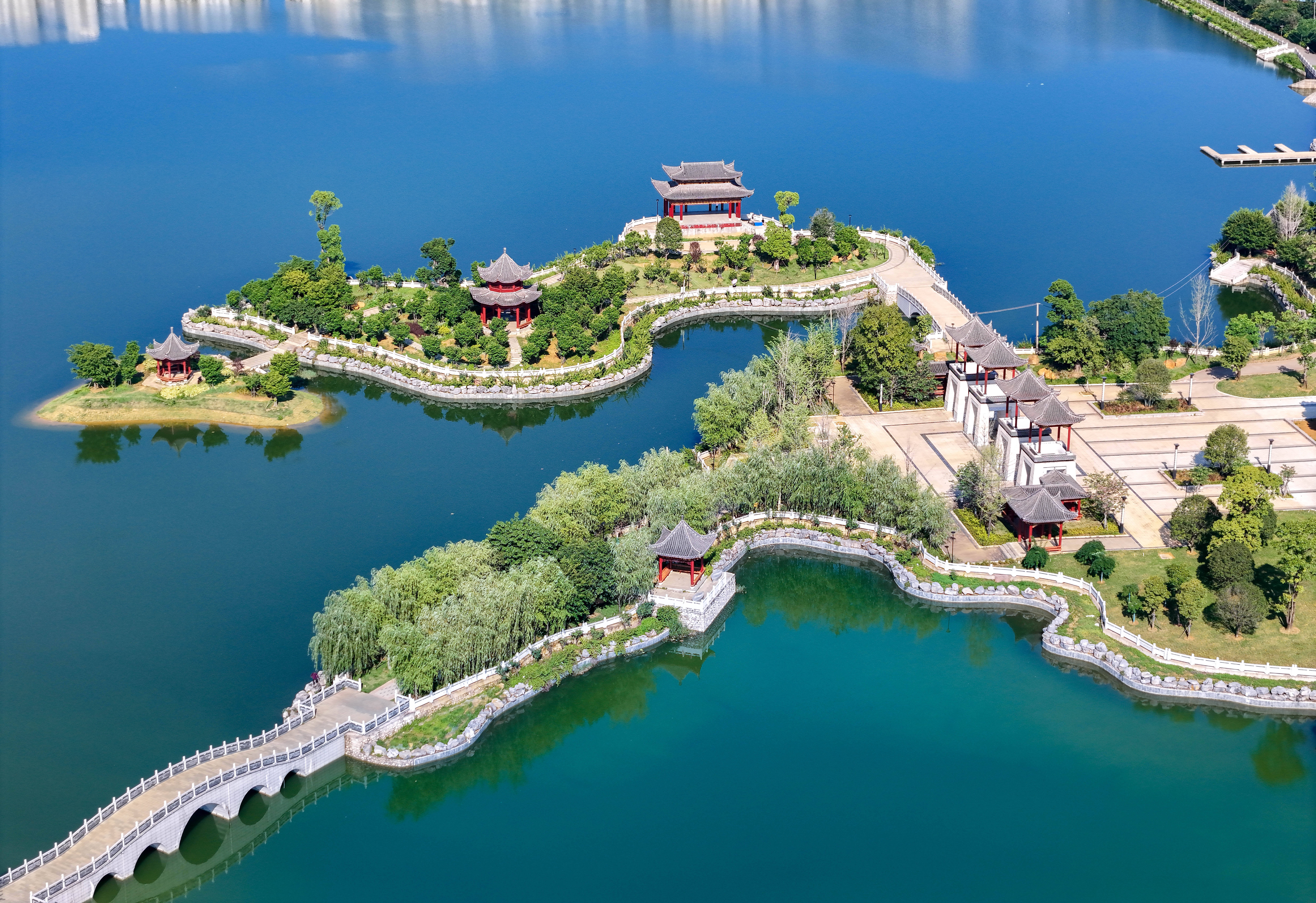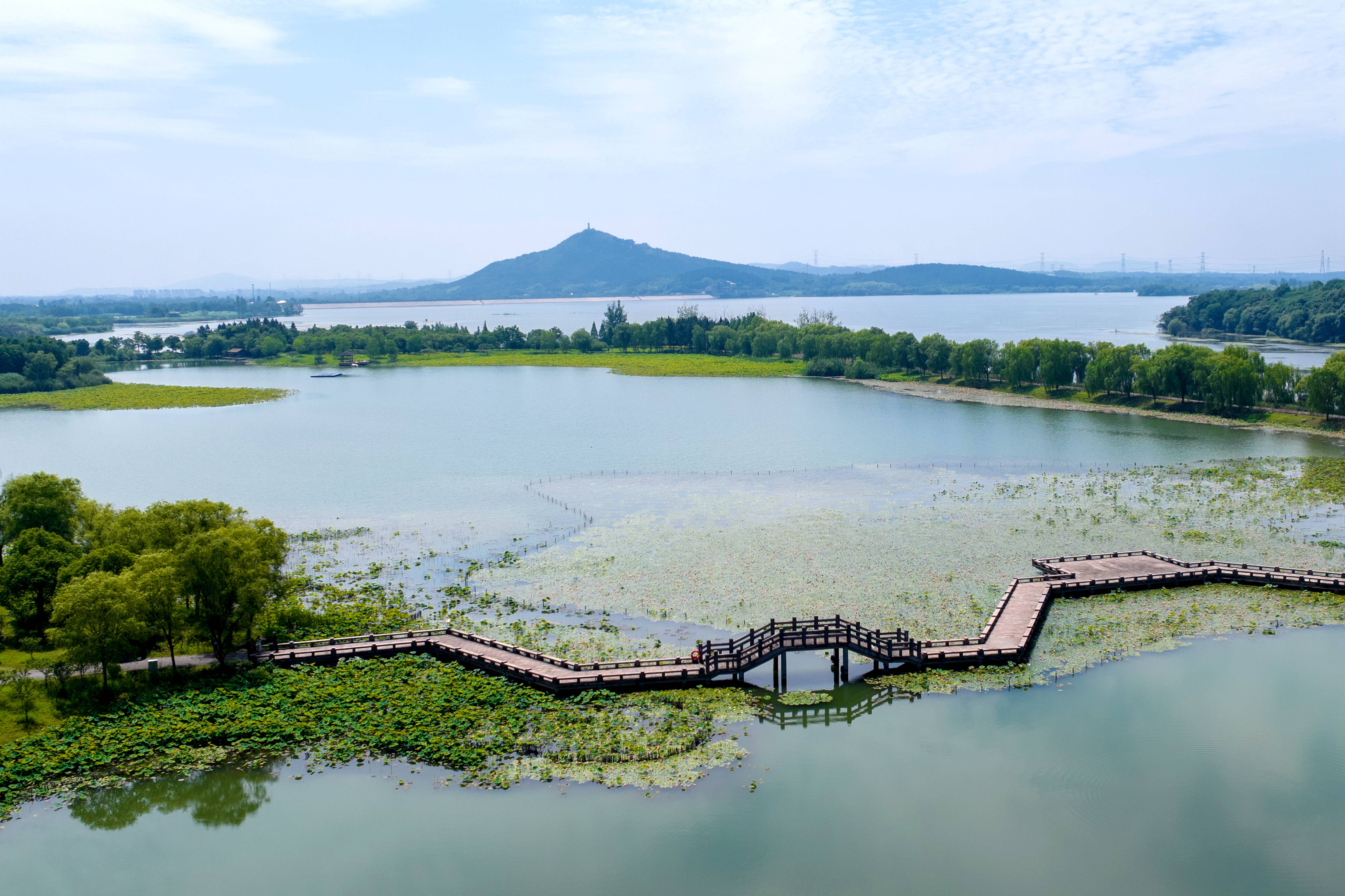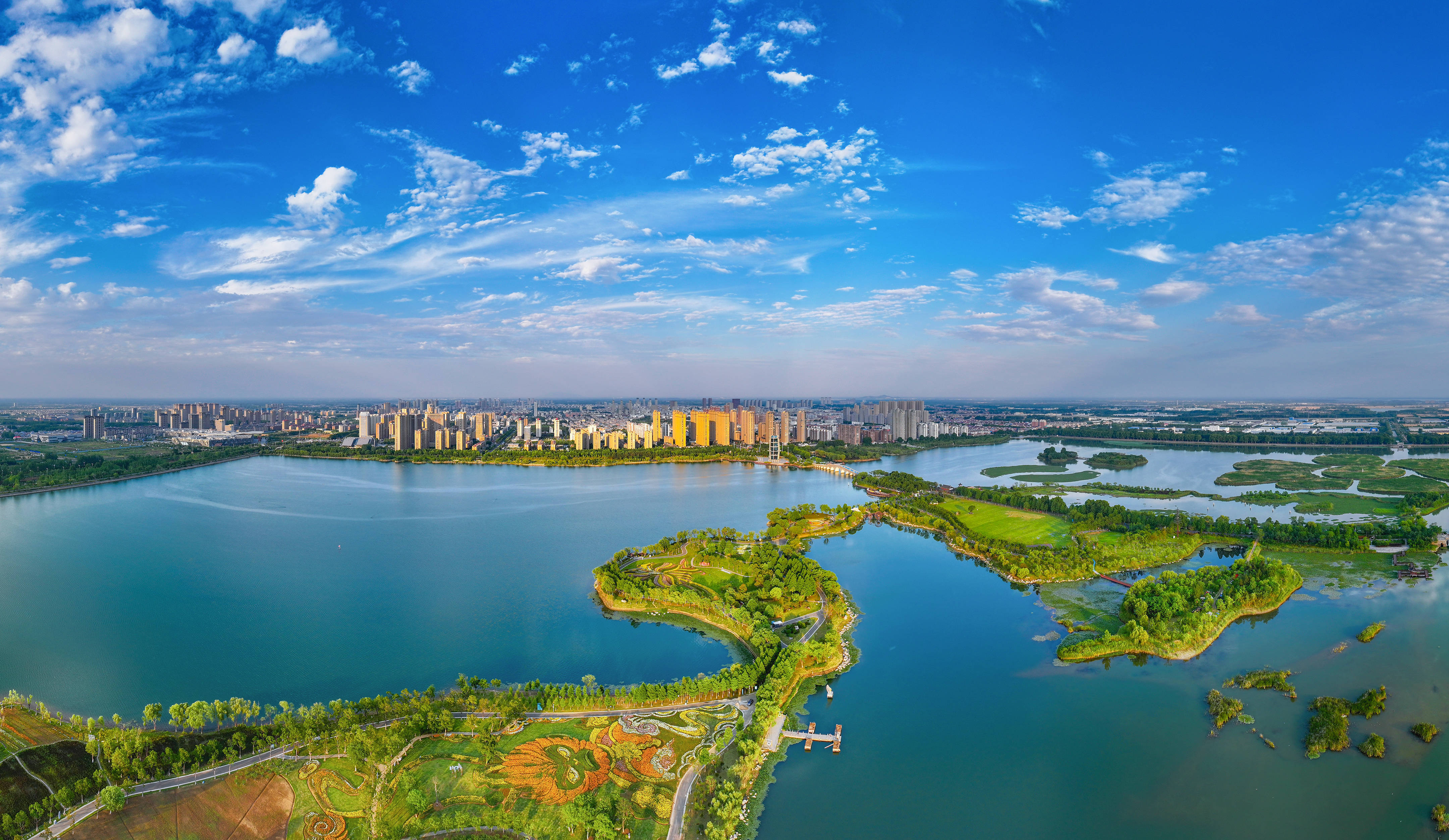 ↑2025年6月5日在江苏省连云港市东海县西双湖国家湿地公园拍摄的风景。(无人机照片)CICPHOTO/李娇 摄